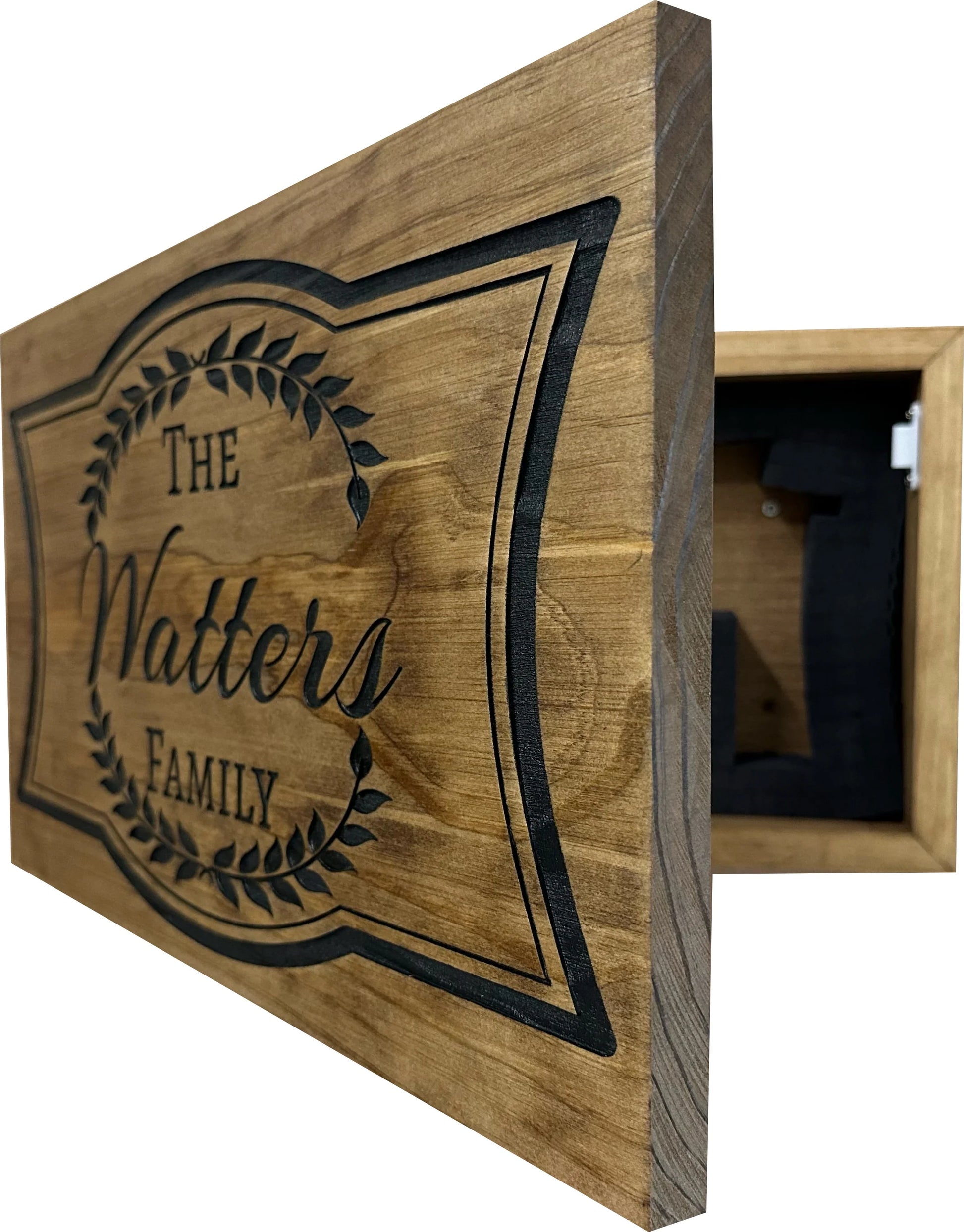 Securely store your firearm in plain sight with the Bellewood Designs Customizable Family Name hidden gun cabinet. Personalize the front with your last name and established date for a meaningful, decorative piece that discreetly conceals dependable firearm storage while blending with any room.