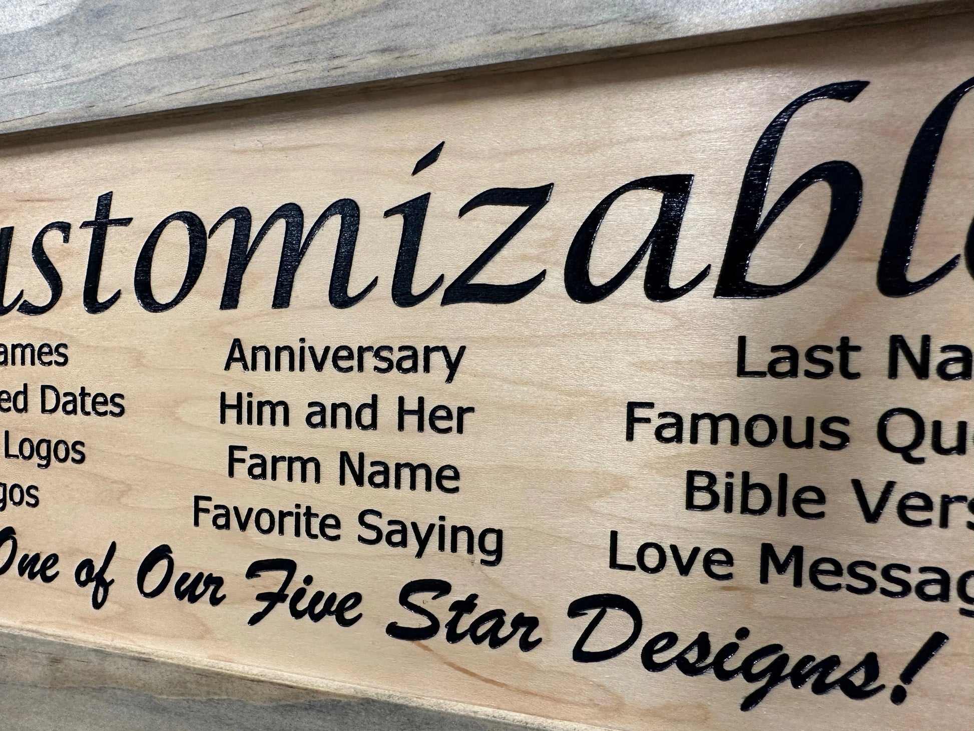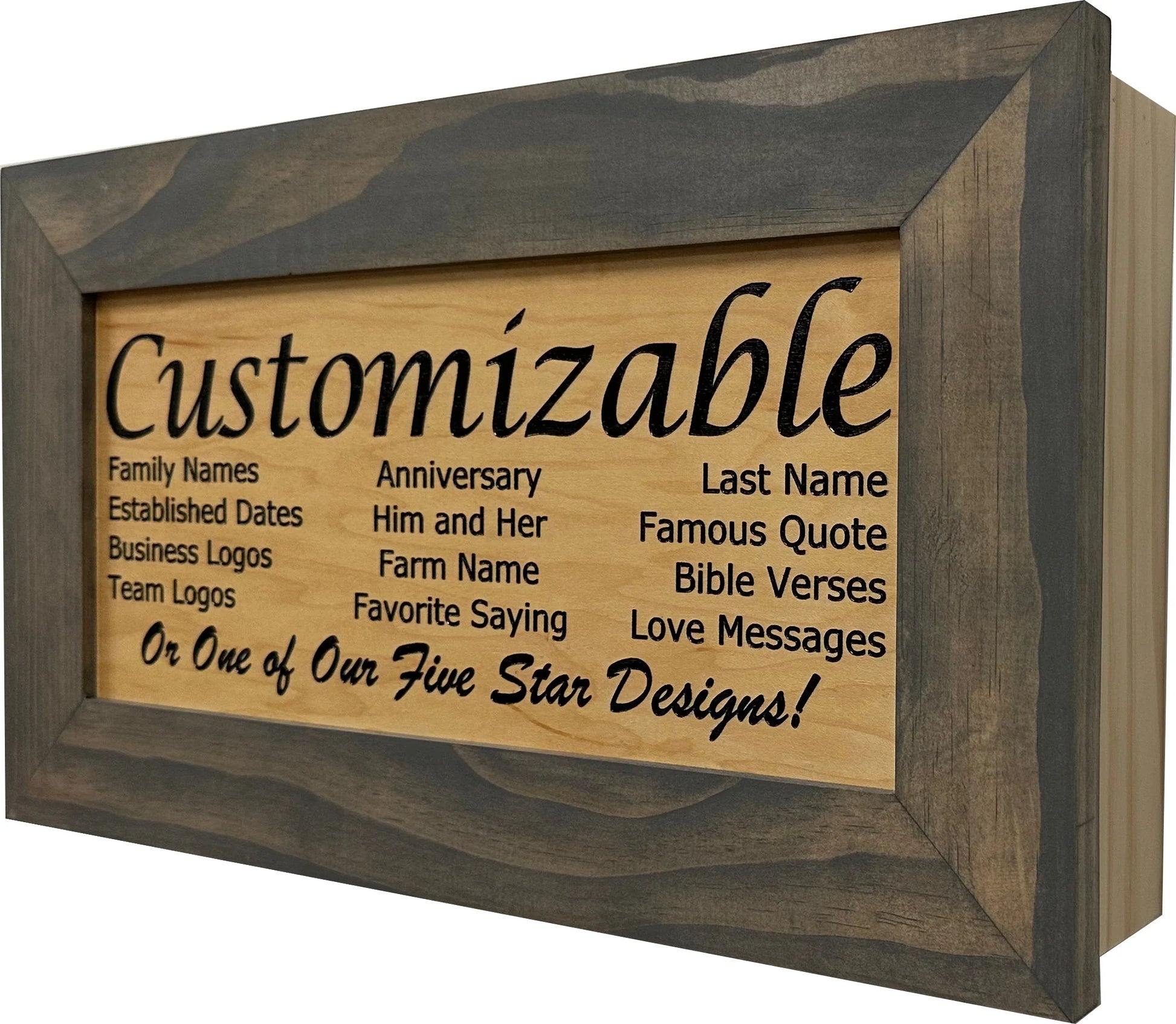 Securely store your firearm in plain sight with the Bellewood Designs Customizable Gun Cabinet Wall Decoration. Personalize the front with your own text and choose a finish to match any room—family names, established dates, business logos, team logos, anniversaries, quotes, Bible verses, love messages, and more. Your firearm and tactical gear remain easily accessible yet securely stored.