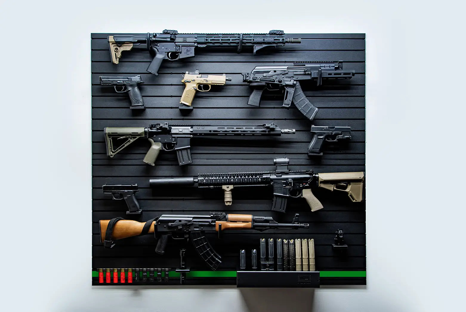 A complete, customizable firearm storage system that keeps your collection secure, organized, and always within reach.