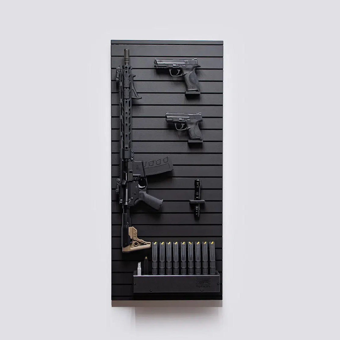A tactical wall system that keeps your firearms fully organized, hidden in plain sight, and instantly accessible when every second matters.
