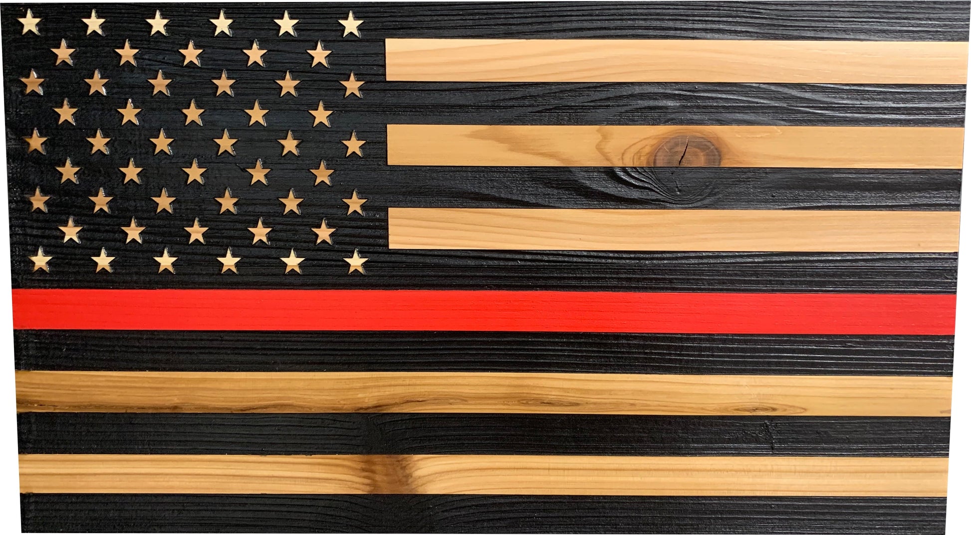 • Handmade Thin Red Line Flag: Solid wood construction with engraved, hand-painted flag art and several gloss coats for long-lasting protection.
