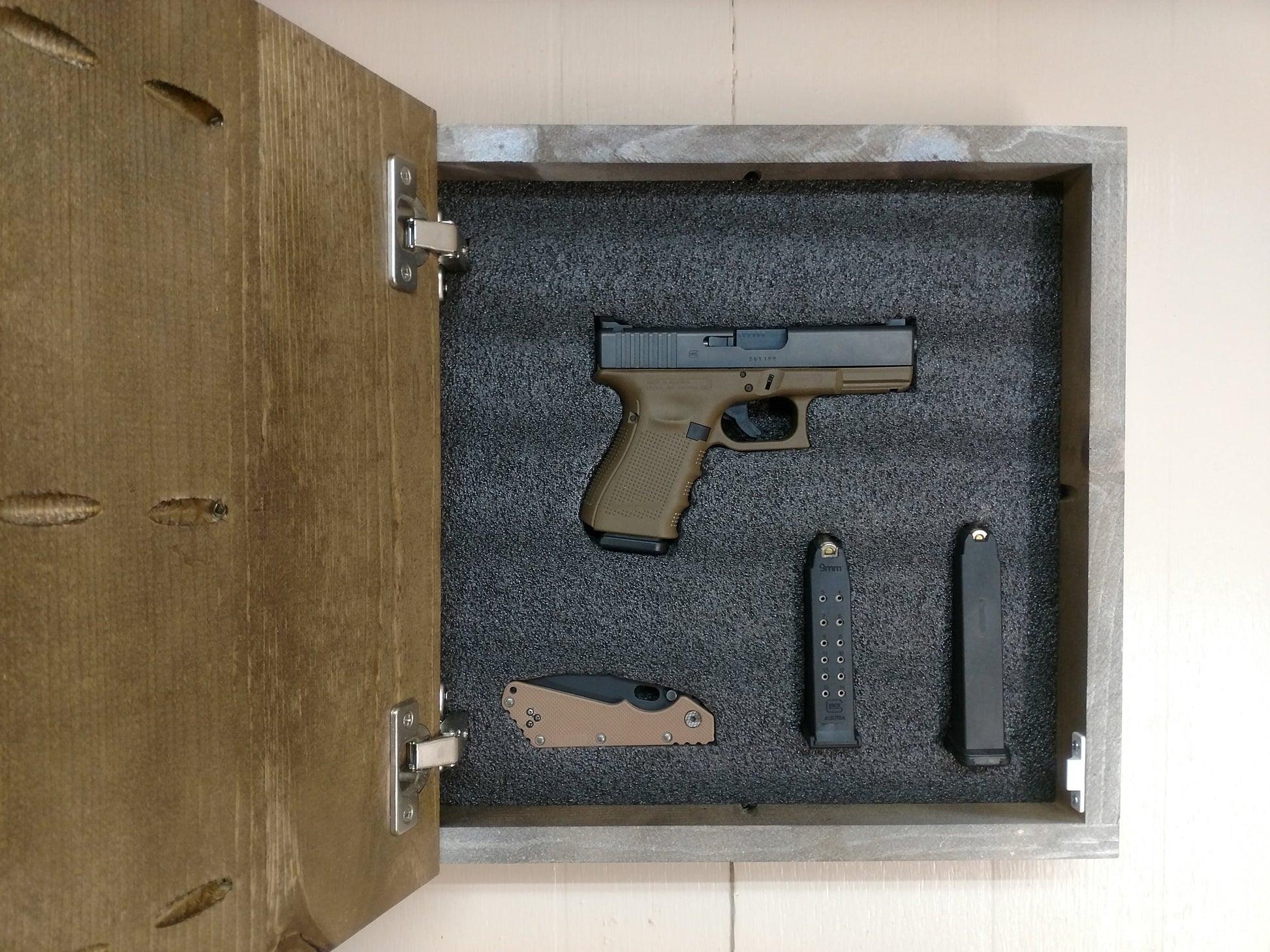 Our wall-mounted concealment box is perfect for firearm owners who want secure handgun storage while adding stylish wall décor to their home. Featuring a closed-cell foam–lined hidden compartment with a magnetic safety lock, it provides both protection and quick access to your valuables.